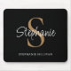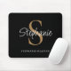Monogram Elegant Script Name Black Gold Mouse Mat
