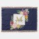 Monogram Elegant Watercolor Rose Floral Botanical Throw Blanket