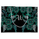 Monogram Emerald Green and Black Flower Pattern Large Gift Bag