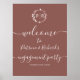 A simple chic foliage faux foil monogram terracotta engagement party welcome sign foam board. Easy to personalise with your details. Modern boho engagement party welcome sign foam board editable, wreaths photo wedding invitation, customisable, calligraphy handwritten font, simple, elegant.