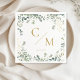 Custom Monogram Wedding Napkins – Watercolor Greenery Design with Editable Date