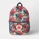 Monogram Exotic flowers and red birds pattern Boho Printed Backpack