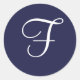 Monogram F, White on Navy Blue, Classic Round Sticker