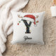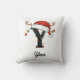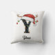 Monogram Family Christmas Antlers Santa Hat Throw Pillow | Rustic Initial Personalised Holiday Cushion