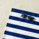 Striking cabana stripe beach towel with navy blue and white striped pattern. Personalise with your monogram and family name.