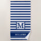 Monogram Family Name Navy Blue And White Striped Beach Towel
