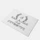 A personalised and monogrammed Family Last Name doormat. Personalised with your monogram initial, last name and year. Black and White Leaves and Flourishes adorn this pretty doormat.