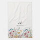 Monogram Family Name Wildflower Boho Chic Tea Towel