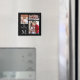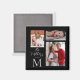 On this stylish black magnet is a monogram letter in the corner i then 3 photos with the text in the middle with family name and date where you can customise to your liking with your own photos and family name.