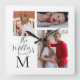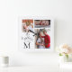 On this stylish square wall clock is a monogram letter in the corner then 3 photos with the text on the side with family name and date where you can customise to your liking with your own photos and family name.