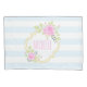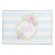 Monogram Fancy Pink Roses Pillowcase, Standard Size. Fancy floral monogram with roses and blueberry. Very ornate and cheerful, with slightly Victorian look and feel. Pastel colours: pink, blue, green. Light blue stripes. Pink and golden monogram (golden is not real gold but colour).