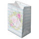 Roses, green leaves, and blueberry on blue stripes, pink and gold monogram (gold is not real gold but colour). Fancy, feminine, and ornate, yet elegant, with slightly Victorian look and feel. Suitable for many occasions like baby shower, birthday etc. Pink, blue, deep purple, green.