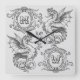 Monogram Fantasy Medieval Dragon Ornate Frame Square Wall Clock