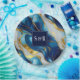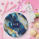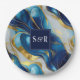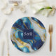Monogram Faux Gold, Blue and White Marbled Wedding Paper Plate