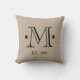 Add your own monogram, initial, family name and wedding anniversary or birthday date faux jute linen burlap rustic chic shabby country chic throw pillow.