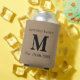 Custom add your own monogram, initial, family name and wedding anniversary or birthday date faux jute linen burlap rustic chic shabby country chic beer or drink can cooler.