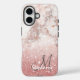 Monogram Faux Rose Gold Glitter White Marble Ombre Case-Mate iPhone Case