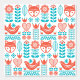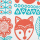 This folk art design features a teal and coral bird and fox pattern.