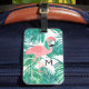 pink flamingo on tropical leaves luggage tag