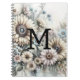 Monogram floral drawing pink yellow sunflowers notebook