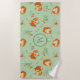 Monogram Floral Pomeranian Pattern Green Beach Towel
