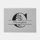 On this distinctive door mat, your name is in script at the centre of a divided flourish letter C. The name and letter are in black, and shown on a medium to light grey background. You may change the background colour, if you'd like, by choosing to Edit Design. Elegance for your entryway!
