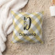 This throw pillow features a beautifully designed monogrammed initial "D" in a lovely watercolor flower motif, combined with a charming blue-grey gingham diagonal pattern. It makes for an ideal retirement gift, showcasing both personalisation and a touch of elegance that will surely brighten up any space.