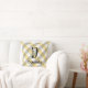 Monogram flower gingham blue grey cushion