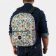 Monogrammed Joyful Backpack for Back to School or Cityscape - Flower Pattern orange Swirl Berry on a white Background Design is hand drawn and shows a seamless repeating floral pattern with green leaves and round orange berries. The main colours in this Pattern are, green, yellow, orange, white