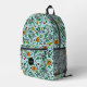 Monogram Flower Pattern orangeSwirlBerry Turquoise Printed Backpack