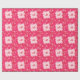 Script monogram frames with a trellis of flowers and leaves in deep fuchsia pink, light pink, and burgundy red, with a soft, ice pink background
