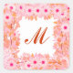 Monogram framed with flowers - pink and peach square sticker