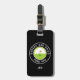 GREENS ARE GOOD FORE YOU! Travel in style with this double-sided golf luggage tag featuring curved white text encircling a red flag on stylised golf greens—all set against a solid black background. The front includes space for three white monogrammed initials, while the back mirrors the design and offers editable fields for your name, phone, address, and email—tastefully accented with a matching golf flag above the contact info.
