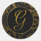 Black and gold Monogram seals with a beautiful scrolling script text art on elegant floral damask. These stickers add a unique touch of class to your wedding invitations!