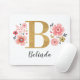 A beautiful, feminine monogrammed pink floral mouse pad, featuring pink flowers and a faux gold monogram letter B. Personalise the mouse pad by adding your name underneath the monogram. All letters available in the shop. Makes a fun gift for a friend or for a bridesmaid gift. Designed for you by Blackberry Boulevard.