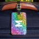 Monogram Glitter Look Personalised Rainbow Luggage Tag