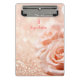 Monogram Glitter Rose Gold Background and Rose Mini Clipboard