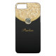 Monogram smartphone cases with cool simulated gold looking glitter background elements and rhinestone jewel bling, all digitally printed on the cover. Change the template name drop or add your own monogram initials.