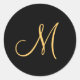 Monogram , gold coloured initial M on black, Classic Round Sticker
