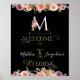 Monogram Gold Floral Blush Black Welcome Wedding Poster