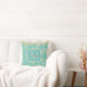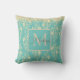 Monogram Gold Floral on Green Teal Throw Pillow