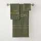 Monogram Gold Green Modern Minimalist Stylish Bath Towel Set.