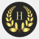 Monogram Gold Laurel Classic Round Sticker