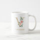 Monogram Gold Letter V | Floral Pink White Green Coffee Mug
