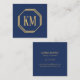 Modern elegant gold on navy business card with your monogram on the front in an upscale typography layout. Easily personalise with your information for a professional chic design.