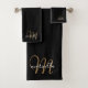 Personalised elegant gold monogram script name bathroom towel set. Refresh your bathroom decor with a modern chic minimalist typographic style.