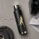 This beverage bottle features a gold silhouette tennis player in process of hitting the ball. Your monogram in matching gold is framed by thin gold lines. This design looks best on the black colour of bottle.