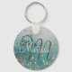 Monogram Gold Stars on Teal Button Key Ring