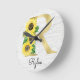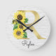 Monogram Gold Sunflower Girly Floral Initial R Round Clock