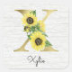 Monogram gold lettering with sunflowers initial sticker, perfect gift for Christmas, birthday, or other celebration for a daughter, sister, aunt, mother, or friend. Customised with monogrammed the gold letter X and a name on a birch wood background. Other letters available in my shop.
